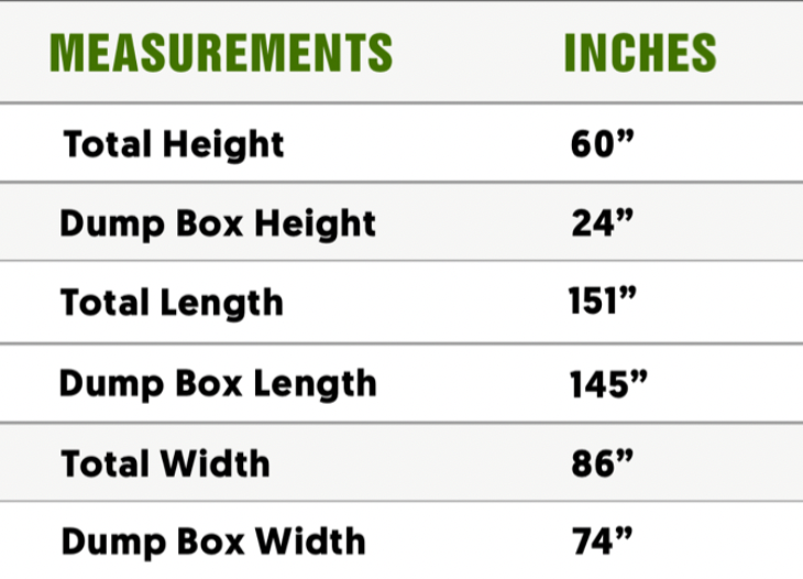 Heavy-duty solution for hauling and dumping material on residential and job-site projects. Rated for 12,277 lbs, the hydraulic dump system makes unloading fast and efficient. 3/4 ton truck towable with extra capacity while still being easy to maneuver in driveways and tight spaces.